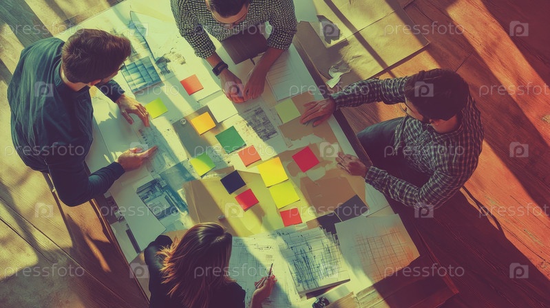 Совместная сессия по планированию дизайн-проекта в современном рабочем пространстве