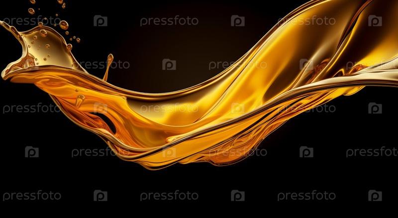 Крупный план, запечатлевший момент всплеска золотистого масла, создающий визуально поразительное зрелище