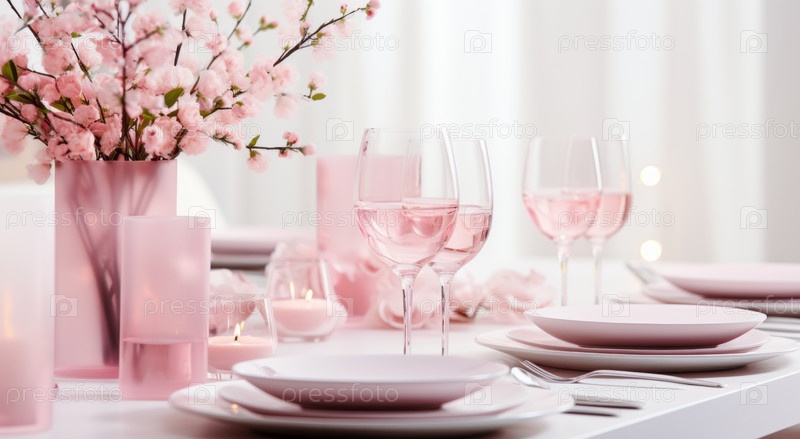 Романтическое торжество с красиво накрытым столом, бокалами для вина и подарочными украшениями