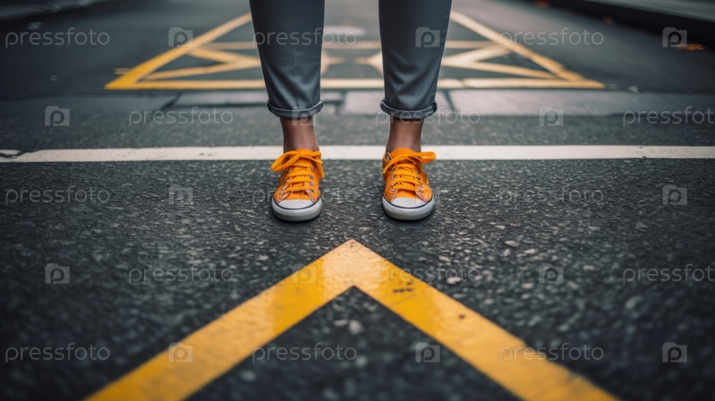 Человек стоит на мокрой улице в желтых ботинках. Это изображение можно использовать для изображения городского образа жизни или дождливой погоды
