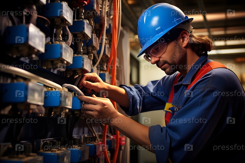 На этой профессиональной фотографии запечатлен специалист по техническому обслуживанию промышленного оборудования за работой, проводящий профилактическое обслуживание конвейерной системы на производственном предприятии
