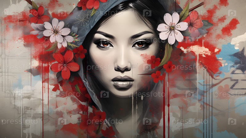 Яркий и абстрактный портрет женщины с выразительными брызгами краски желтого и синего цветов