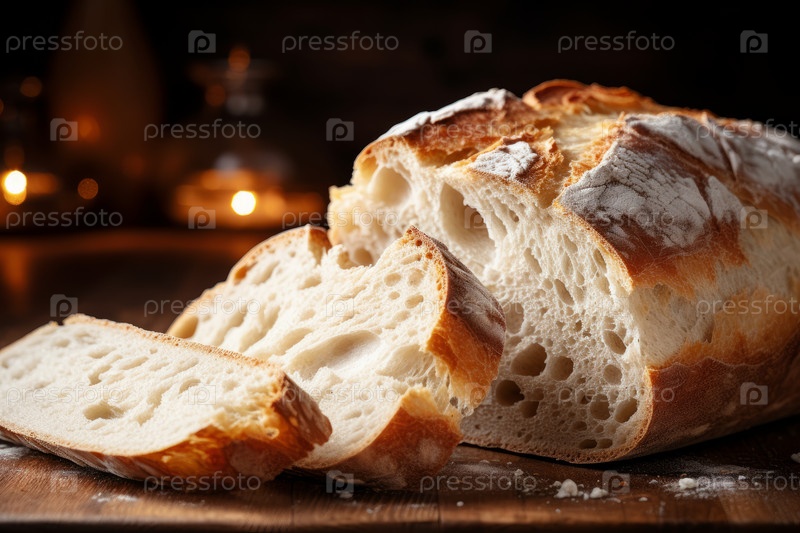 Свежеиспеченный хлеб и пшеница на столе, континентальный завтрак, рекламное изображение супермаркета, органическая еда, фон пекарни
