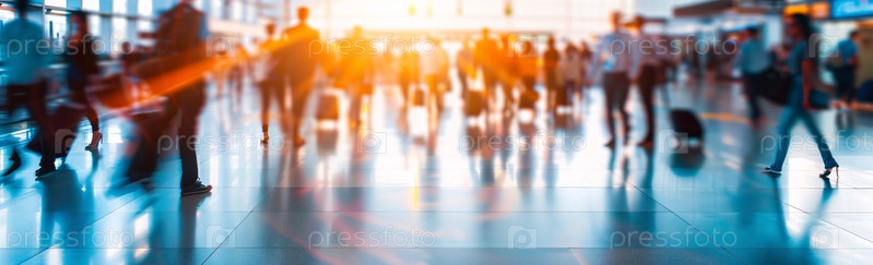 Оживленный аэропорт в час пик с потоком света