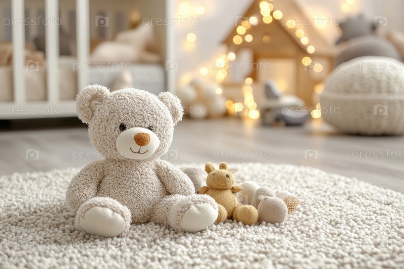 Уютный плюшевый мишка в теплой и уютной детской комнате