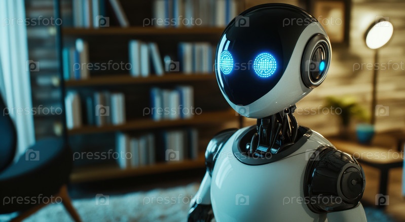 Футуристический робот-помощник с искусственным интеллектом в современной домашней обстановке