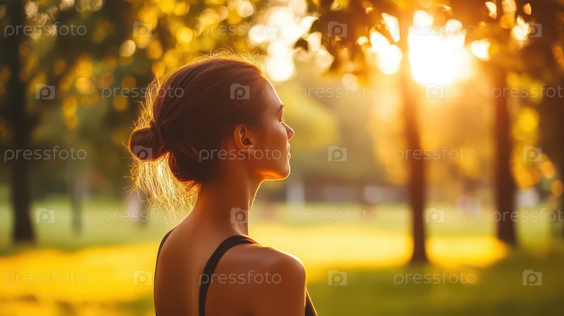 Женщина наслаждается солнцем в парке