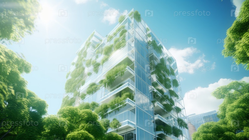 Высокое здание с живописным видом на деревья на переднем плане. Идеально подходит для любителей архитектуры или природы, ищущих уникальный городской пейзаж