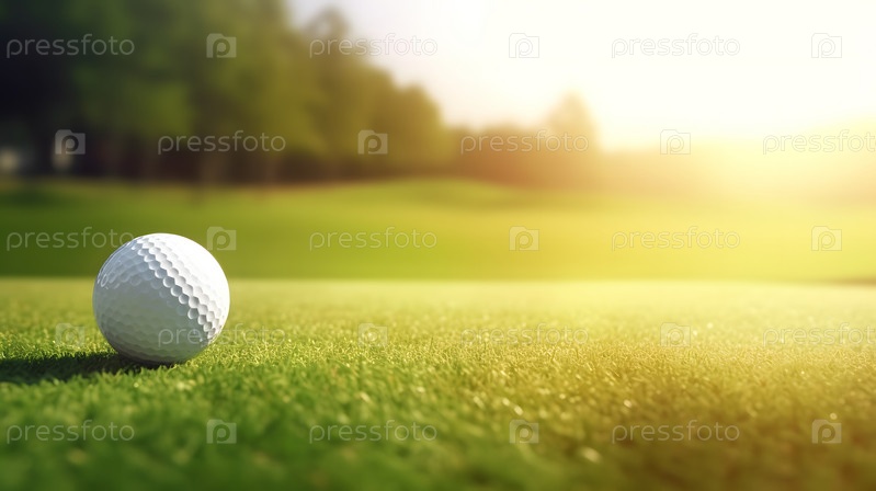 Мяч для гольфа, лежащий на фервее поля для гольфа загородного клуба