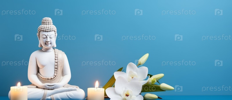 Медитация статуи Будды на синем фоне