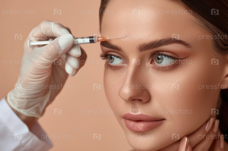 Человеку делают косметическую инъекцию в клинических условиях, руки в перчатках находятся на его лице