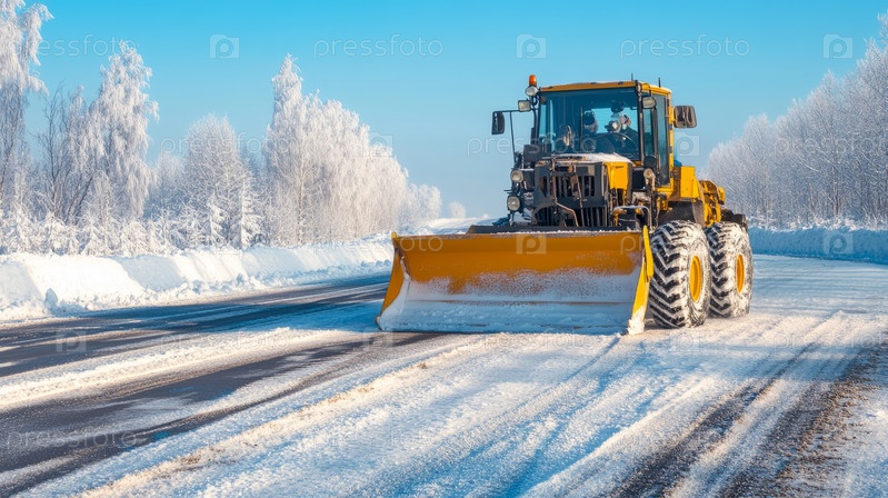 Зимний снегоочиститель расчищает дороги морозным утром