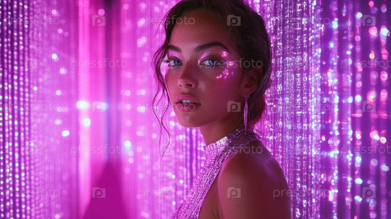 Элегантность и таинственность в неоновом дожде ночного города