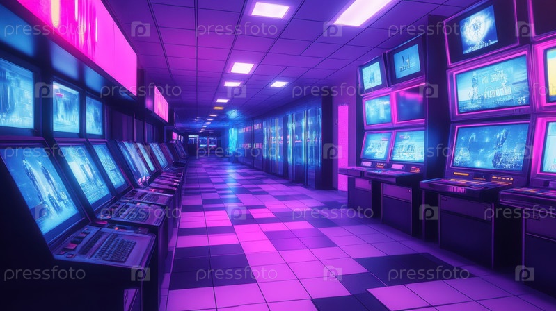 Неоновый Киберпанк Аркадный Коридор