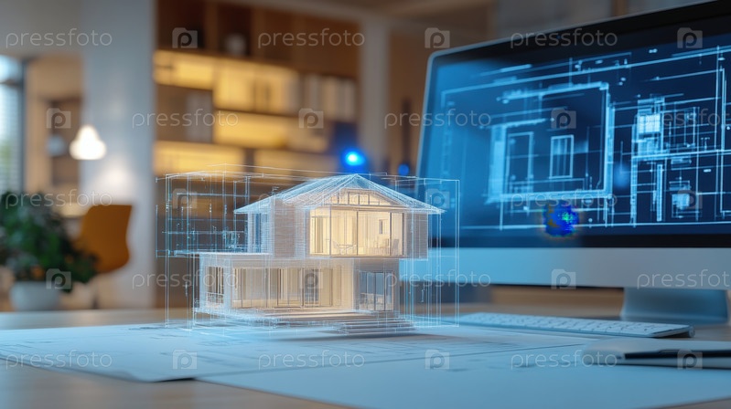 Почувствуйте будущее архитектурного дизайна с помощью этой потрясающей 3D-голограммы, отображающей современный проект дома, идеально подходящий для демонстрации инноваций и передовых технологий в строительстве