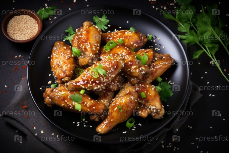 Эти куриные крылышки покрыты липким и ароматным соусом, что делает их идеальной закуской или основным блюдом для любого случая. Куриные крылышки идеально приготовлены