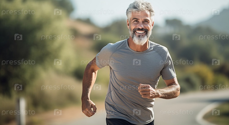 Портрет счастливого пожилого мужчины с седыми волосами и бородой в спортивной одежде