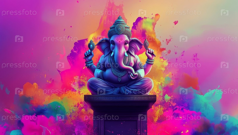 Завораживающее изображение духовного просветления, изображающее Ганешу, окруженного яркими бабочками и безмятежным окружением лотосов, передающее ощущение мистической гармонии