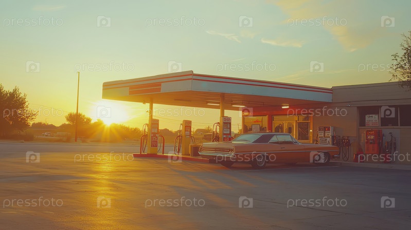 Винтажный автомобиль на заправке Sunset