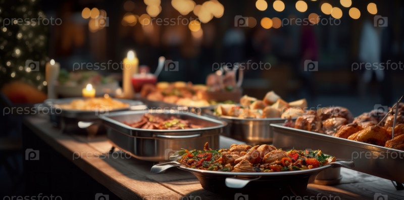 Мясо и овощи на гриле, еда на шведском столе в отеле, группа людей на кейтеринге, еда в ресторане с жареным мясом, обслуживание по системе «шведский стол»