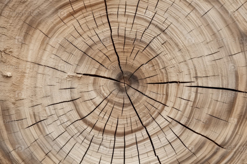 Старая деревянная поверхность среза дуба. Грубая органическая текстура годичных колец с крупным планом торцевого волокна