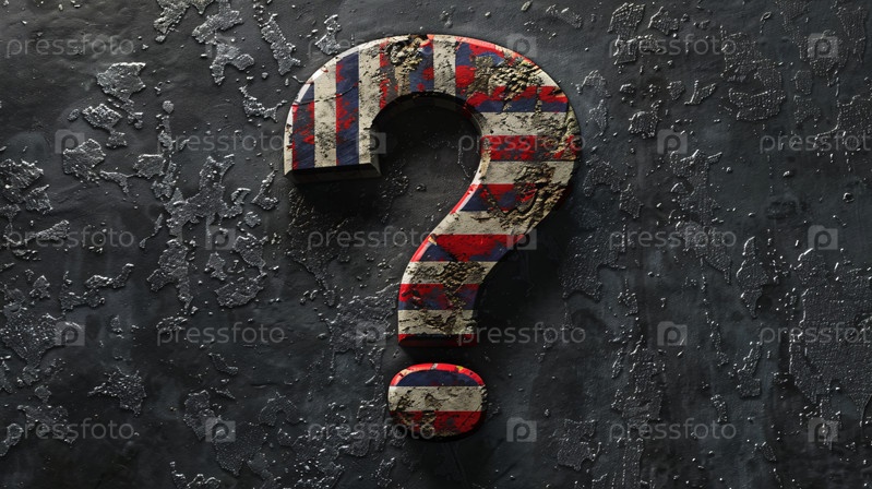 Выветренный американский флаг с вопросительным знаком на деревенской металлической поверхности