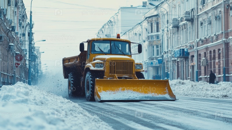 Зимний снегоочиститель расчищает дороги морозным утром