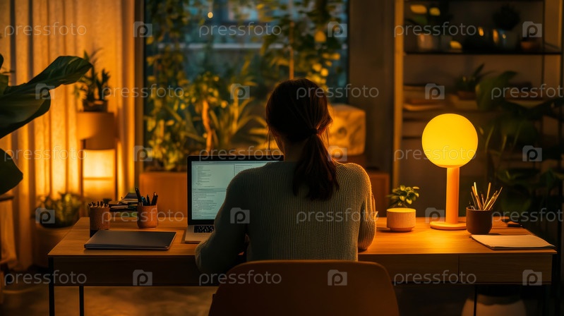 Уютная обстановка домашнего офиса для удаленной работы. Вдохновение