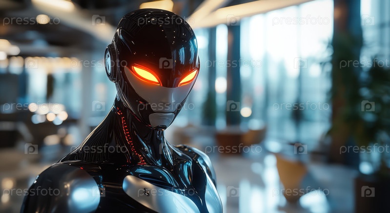 Футуристический робот в стильном офисе с современным дизайном интерьера