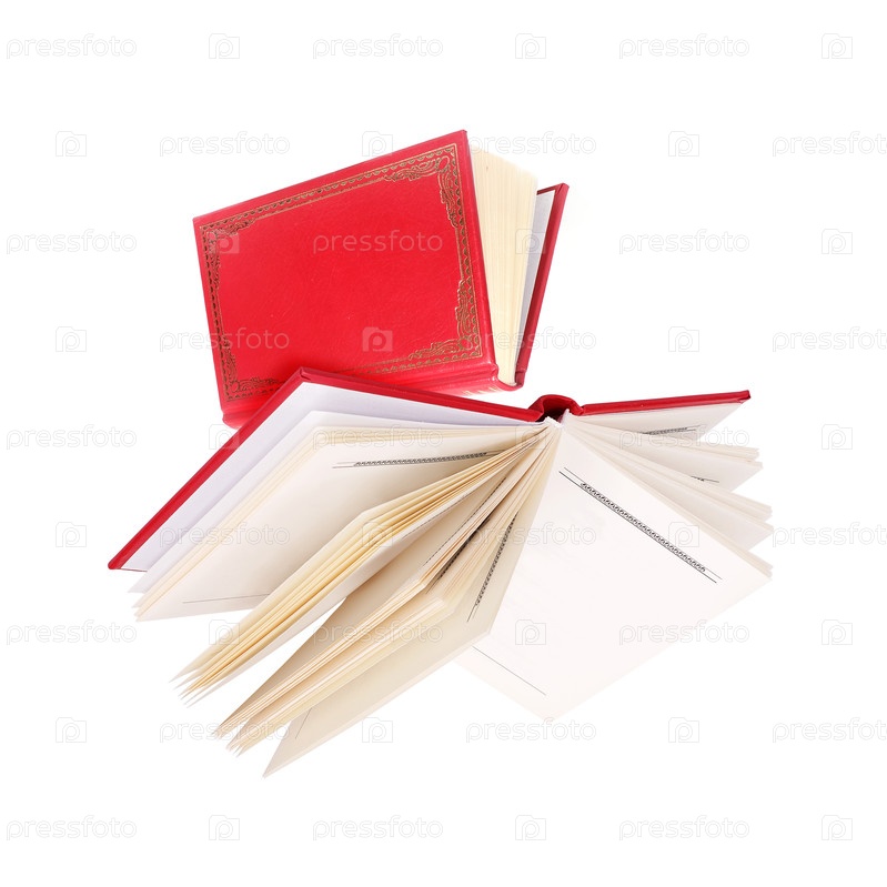 Летающая красная книга изолирована на белом фоне. Элемент дизайна с обтравочным контуром