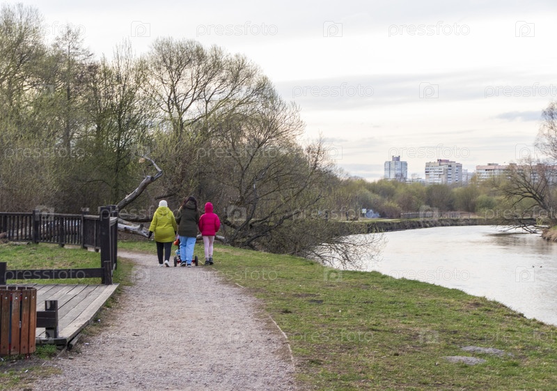 Семейные прогулки на свежем воздухе у пруда. Сезон
