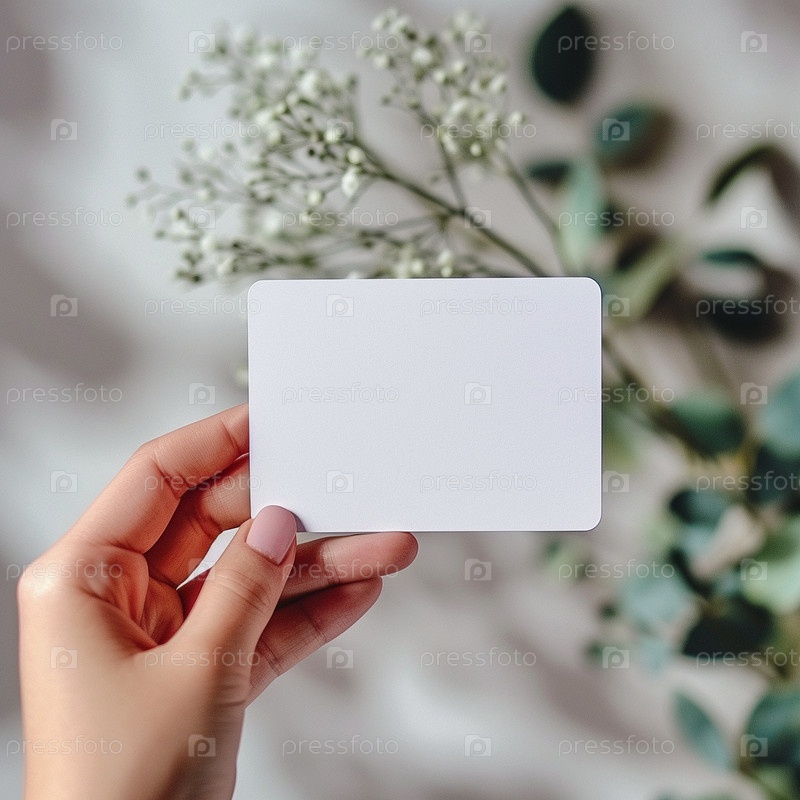 Рука держит маленькую белую наклейку. Макет для этикеток, рекламы, маркетинга