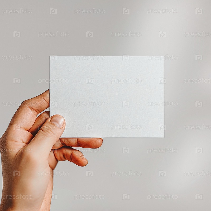 Рука держит маленькую белую наклейку. Макет для этикеток, рекламы, маркетинга
