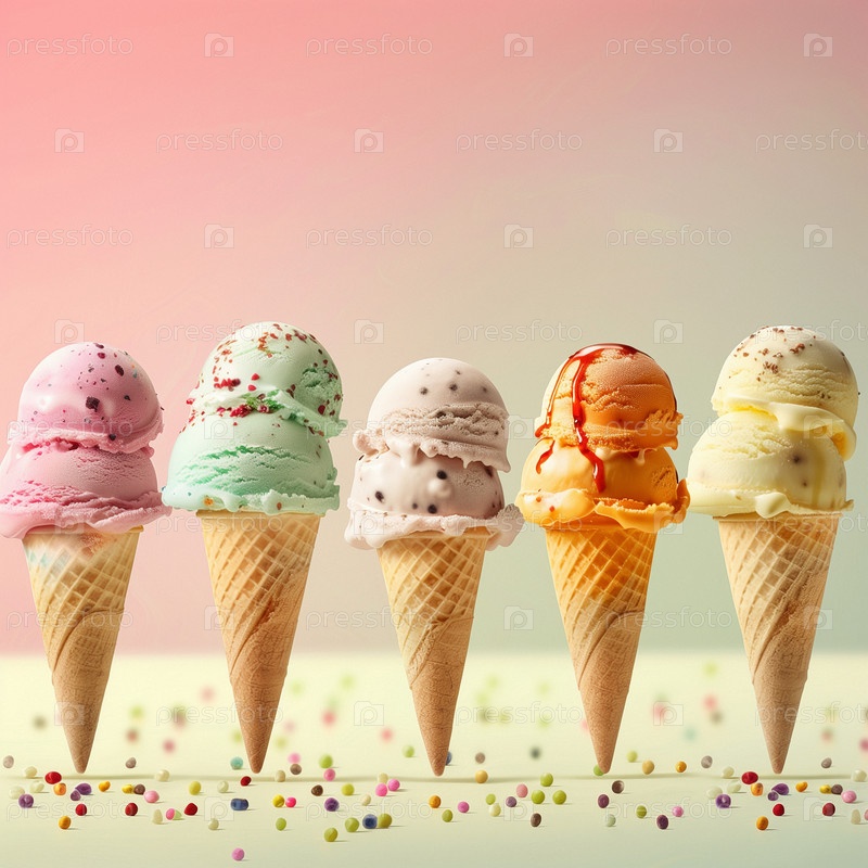 Много вкусного и красивого мороженого. Летний десерт. Плакат, меню