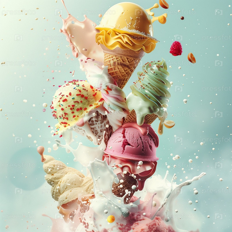 Много вкусного и красивого мороженого. Летний десерт. Плакат, меню