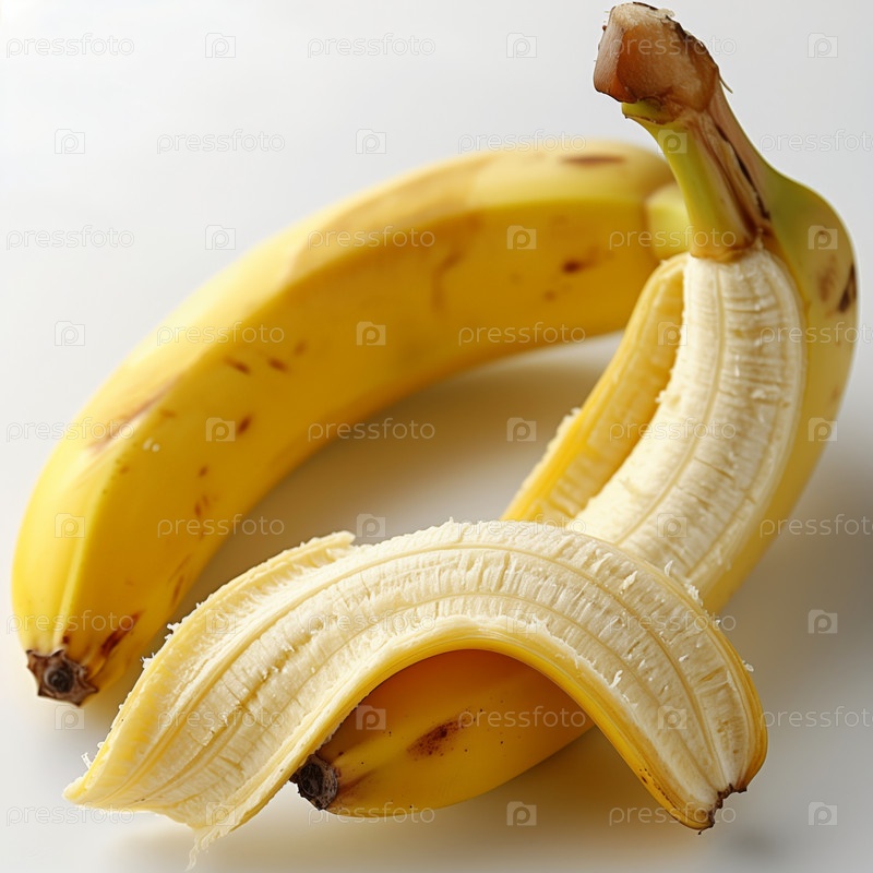 Целый и очищенный банан на белом фоне