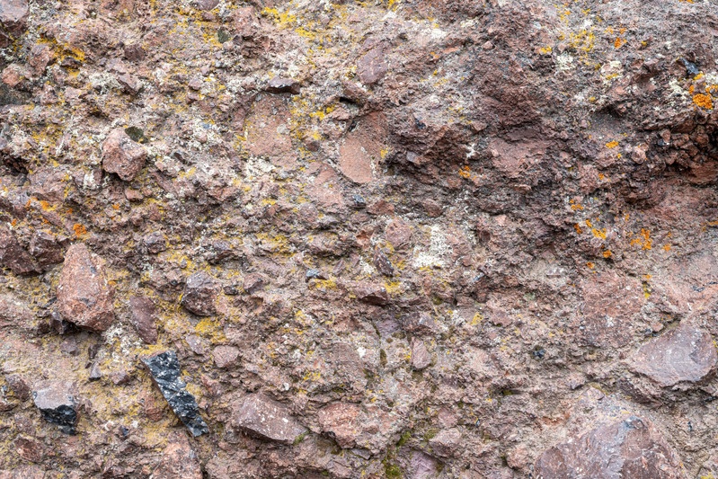 Каменистая текстура с разноцветными лишайниками на поверхности натурального камня при дневном свете