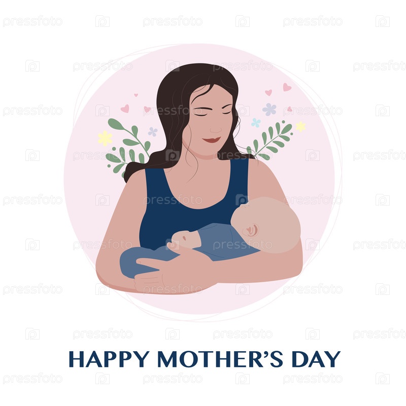 Баннер с Днем матери. Мать и новорожденный ребенок
