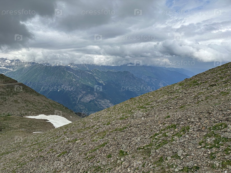Живописный горный пейзаж под драматическим облачным небом