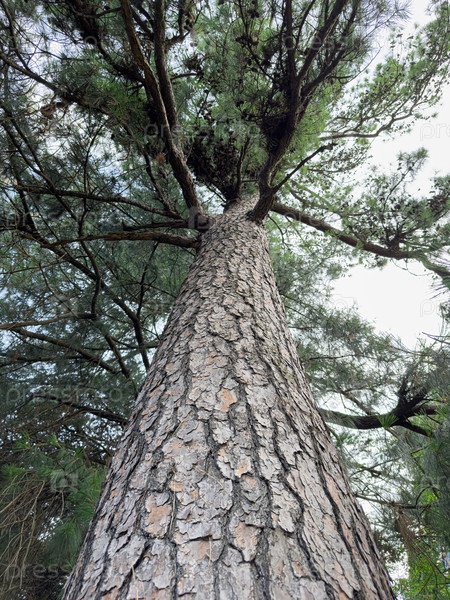 Высокое дерево, вид с уровня земли под чистым небом