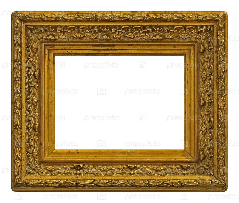 Золотая рамка для картин, зеркал или фото, изолированных на белом фоне. Элемент дизайна с обтравочным контуром