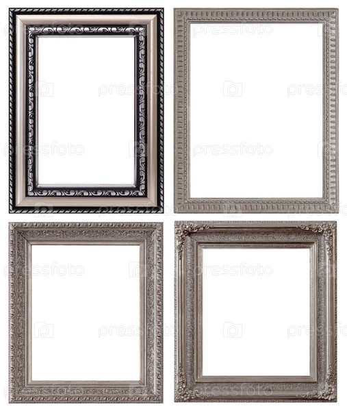 Набор серебряных рам для картин, зеркал или фотографий, изолированных на белом фоне