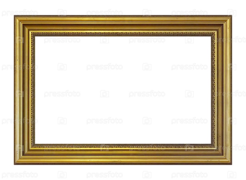 Золотая рама для картин, зеркал или фотографий на белом фоне
