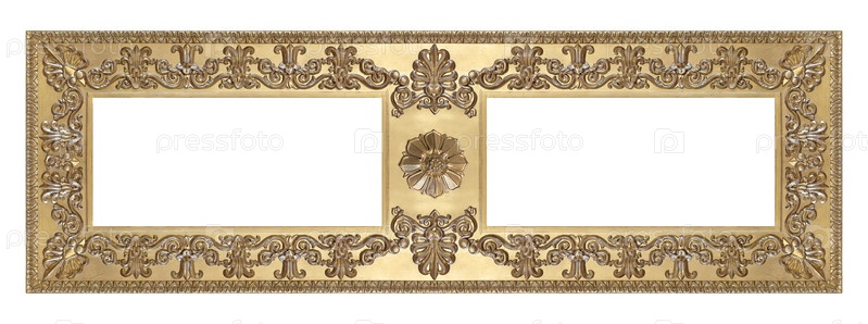 Двойная золотая рама (диптих) для картин, зеркал или фотографий, изолированных на белом фоне