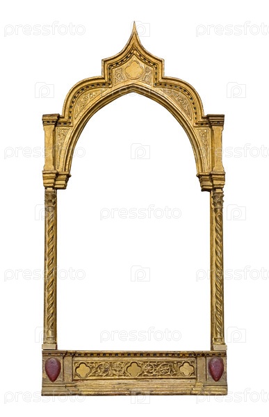 Золотая рамка для картин, зеркал или фото, изолированных на белом фоне. Элемент дизайна с обтравочным контуром