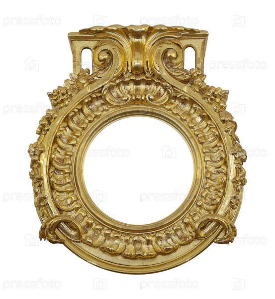 Золотая круглая рамка для картин, зеркал или фото, изолированных на белом фоне. Элемент дизайна с обтравочным контуром