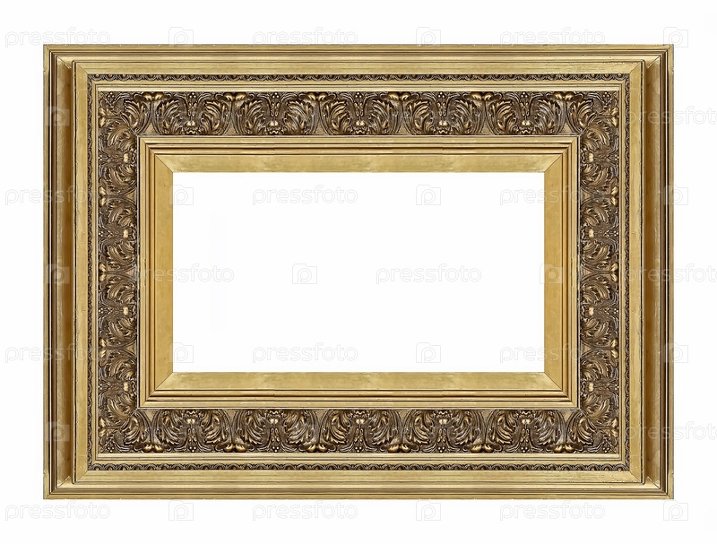 Золотая рама для картин, зеркал или фотографий на белом фоне