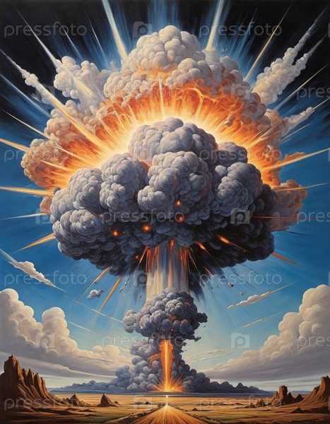 Ядерный взрыв — процесс высвобождения большого количества тепловой и лучистой энергии в результате неконтролируемой цепной реакции ядерного деления за очень короткое время. Создан ИИ. Термоядерный синтез