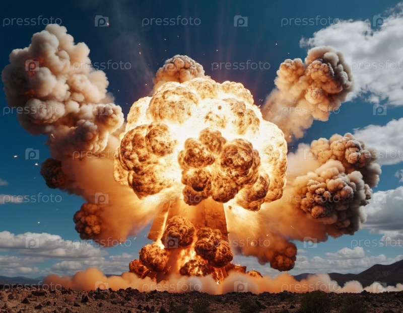 Ядерный взрыв — процесс высвобождения большого количества тепловой и лучистой энергии в результате неконтролируемой цепной реакции ядерного деления за очень короткое время. Создан ИИ. Термоядерный синтез