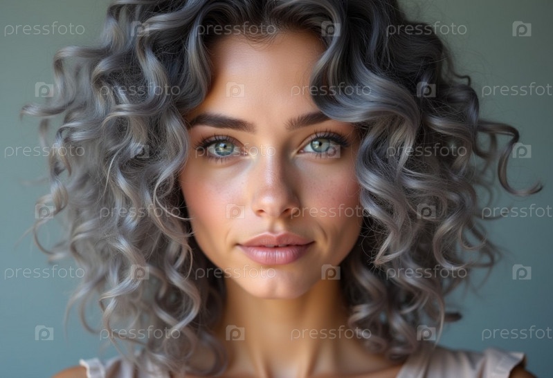 Поразительный крупный план показывает роскошные седые пепельные локоны, сверкающие блеском. Мягкие волны элегантно ниспадают, подчеркивая текстуру и красоту волос в мягком естественном свете. Генеративный ИИ